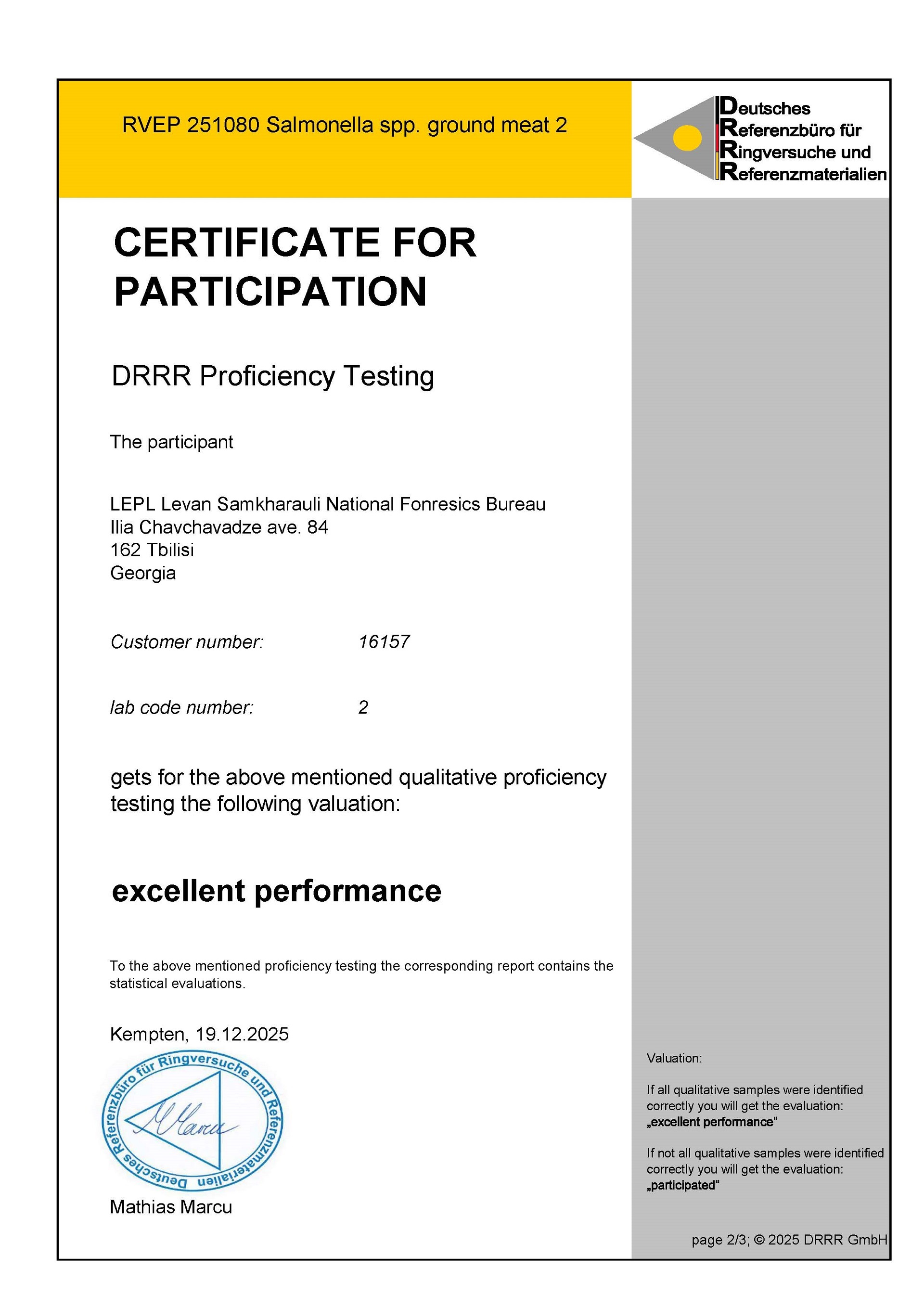 ბიუროს ექსპერტები სისტემატურად მონაწილეობენ ავტორიტეტული საერთაშორისო საექსპერტო დაწესებულებებისა და კომპანიების მიერ ორგანიზებულ ლაბორატორიათშორის ტესტირებებში, რომლის ფარგლებშიც მიღებული უმაღლესი შედეგები ადასტურებს ექსპერტთა მაღალ პროფესიულ კვალიფიკაციას და კიდევ უფრო ზრდის სანდოობას ბიუროს საქმიანობის მიმართ.